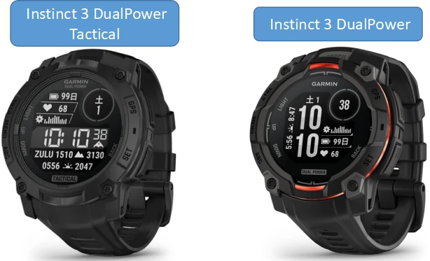 大きく分けて「Instinct 3 AMOLED」または「Instinct 3 Dual Power」のタクティカルモデルがラインナップされています。