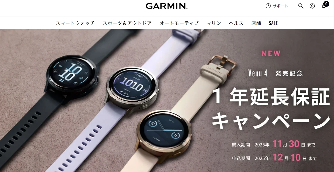 現在ガーミン公式サイトでは、Venu4発売記念として1年延長保証キャンペーンを開催中です。